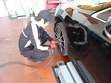 当店の国家整備士より、タイヤの交換作業をさせて頂きます。